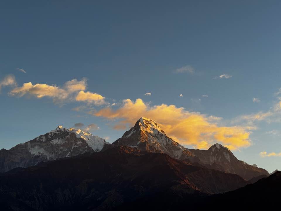 At sunrise, the sight of golden light spreading over these snow-capped mountains is truly magical and a must-see for anyone visiting Nepal.